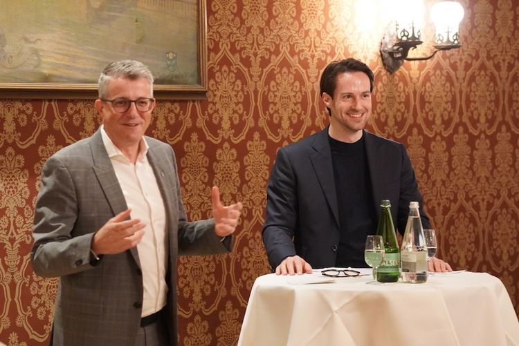 Benjamin Mühlemann, Ständerat des Kantons Glarus und Co-Parteipräsident der FDP Schweiz und Claudio Zihlmann, Präsident FDP Kreis 7+8 und kantonaler Fraktionspräsident
